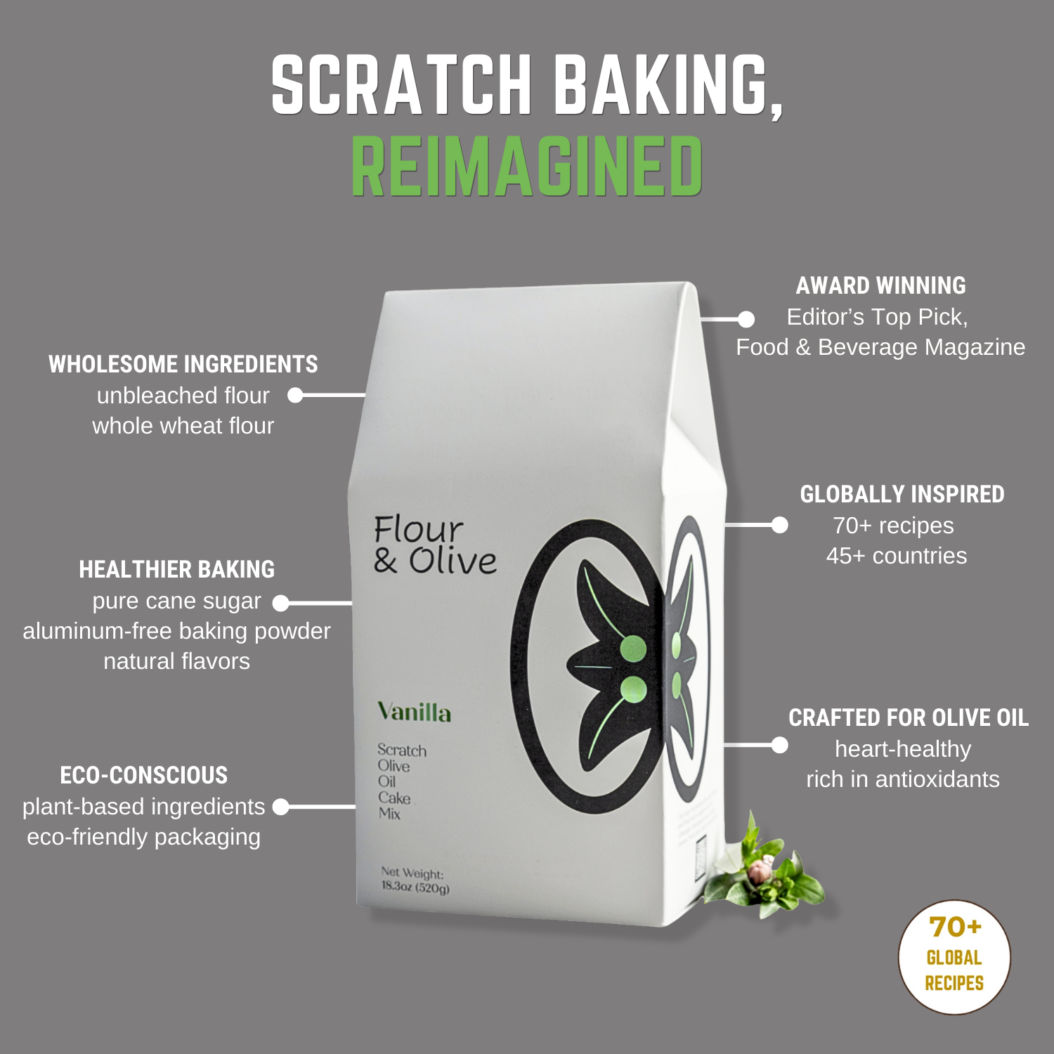 Designed for extra virgin olive oil and simple baking, our plant-based cake mixes deliver a light, airy crumb with a refined approachable olive oil flavor and subtle fruity notes that let the cake's essence shine. Each mix connect to our unique, interactive Cake Map with 70+ global recipes, including vegan and dairy-free options.